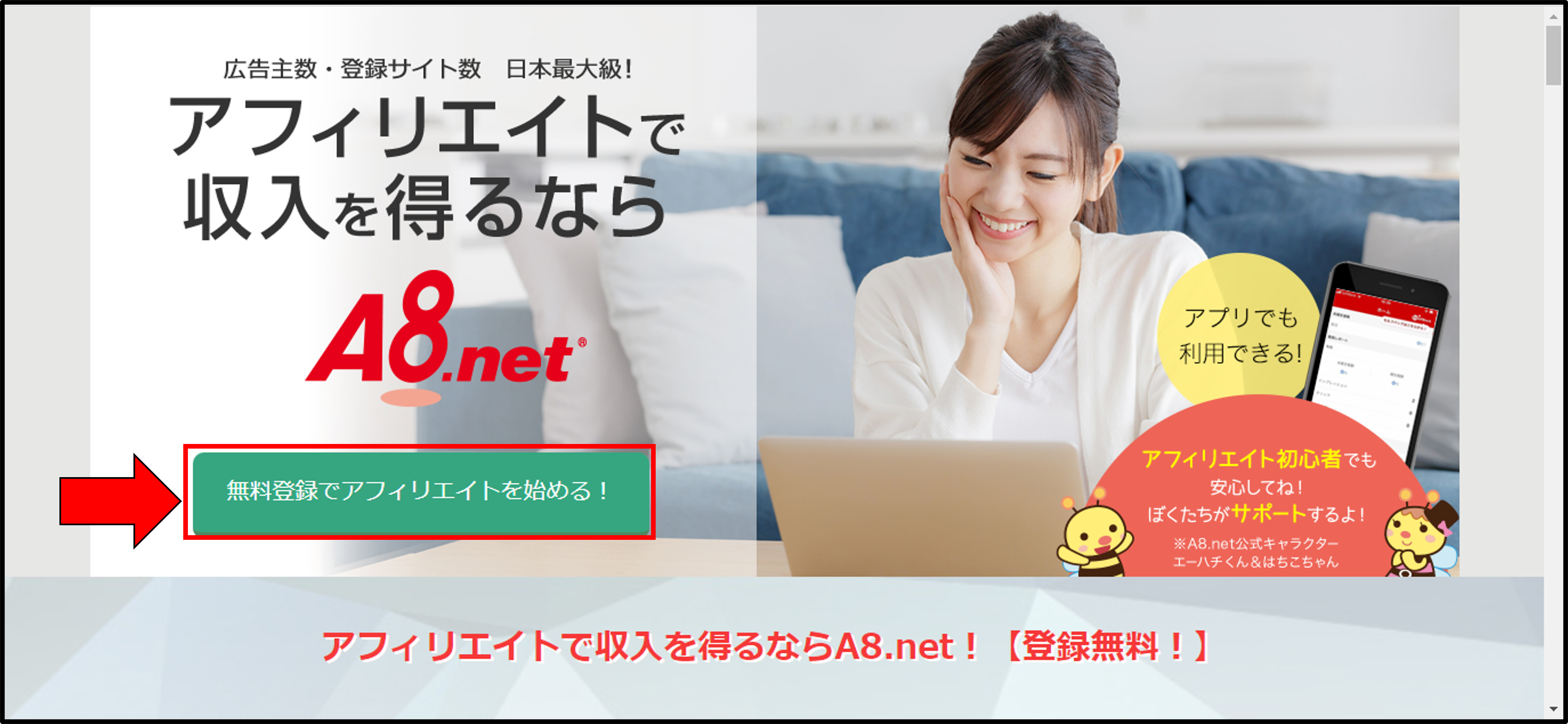 スマートフォン・PCに対応したアフィリエイトのA8.net