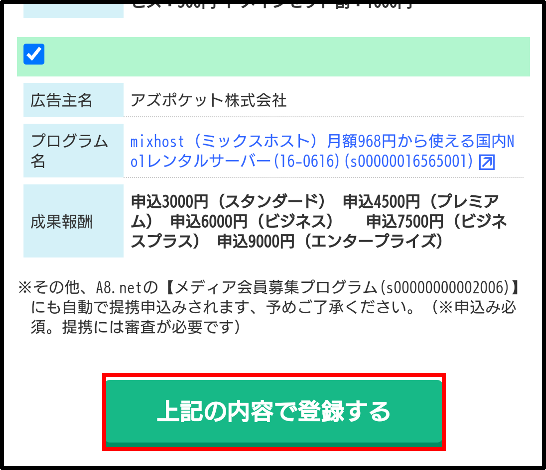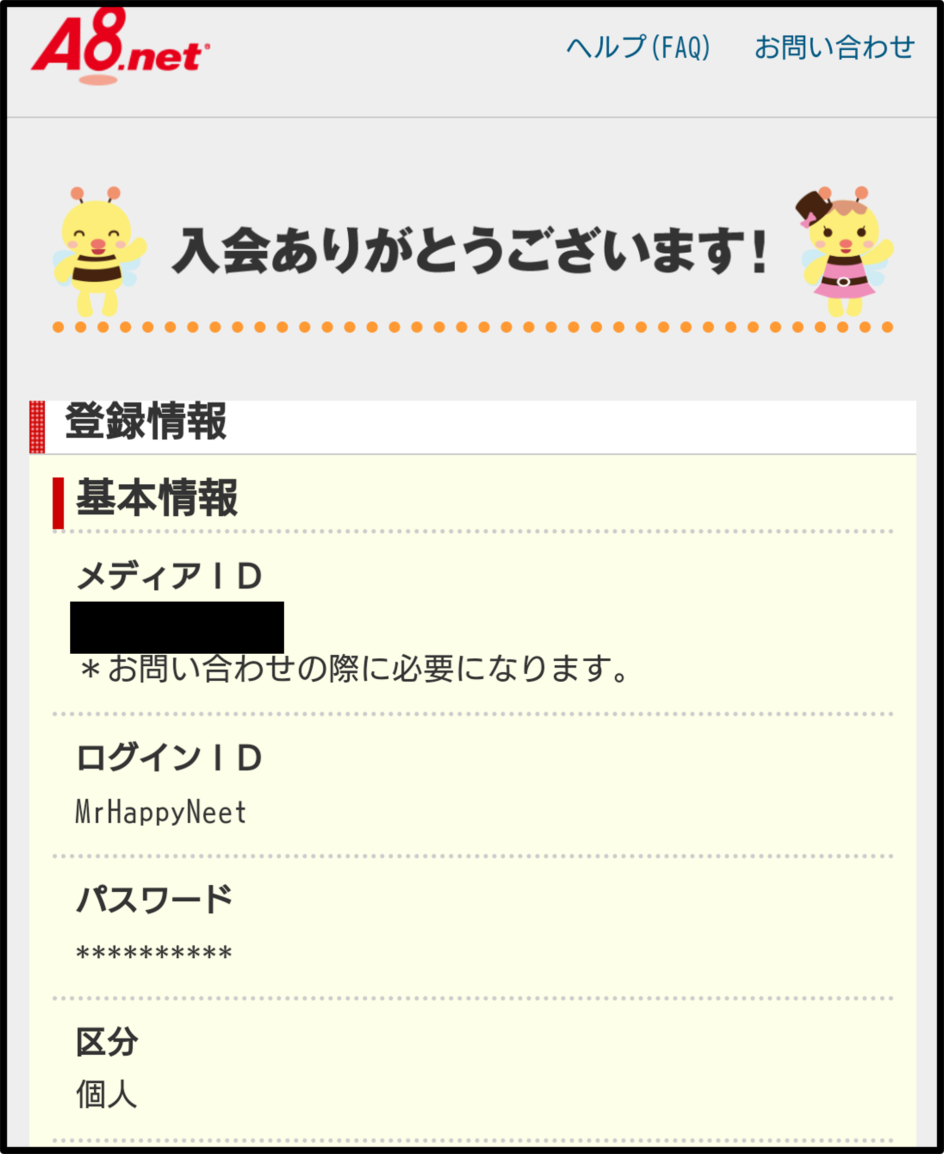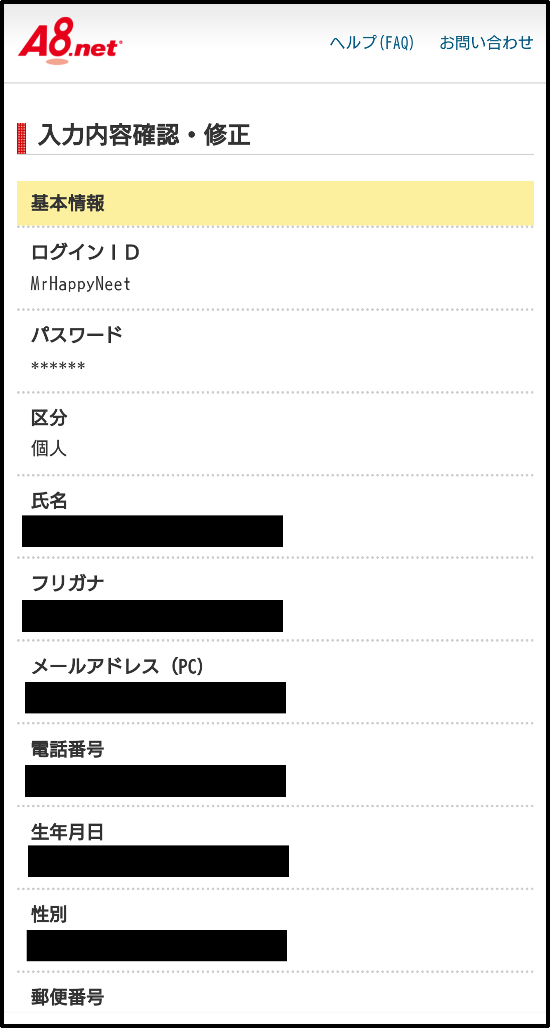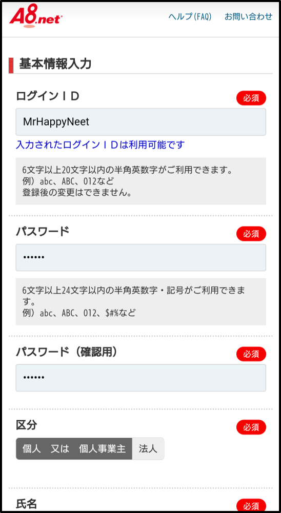 以上でA8.netの登録が完了しました。
