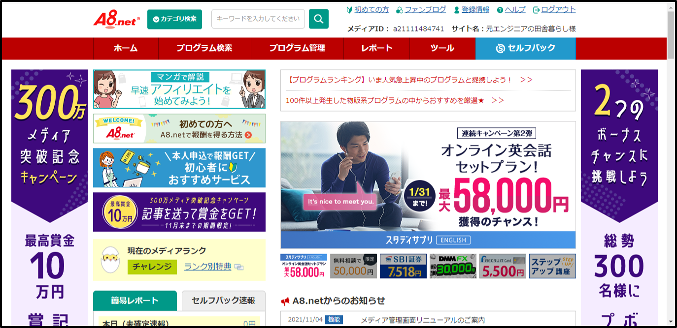 A8.netでは、セルフバックというサービスが提供されています。