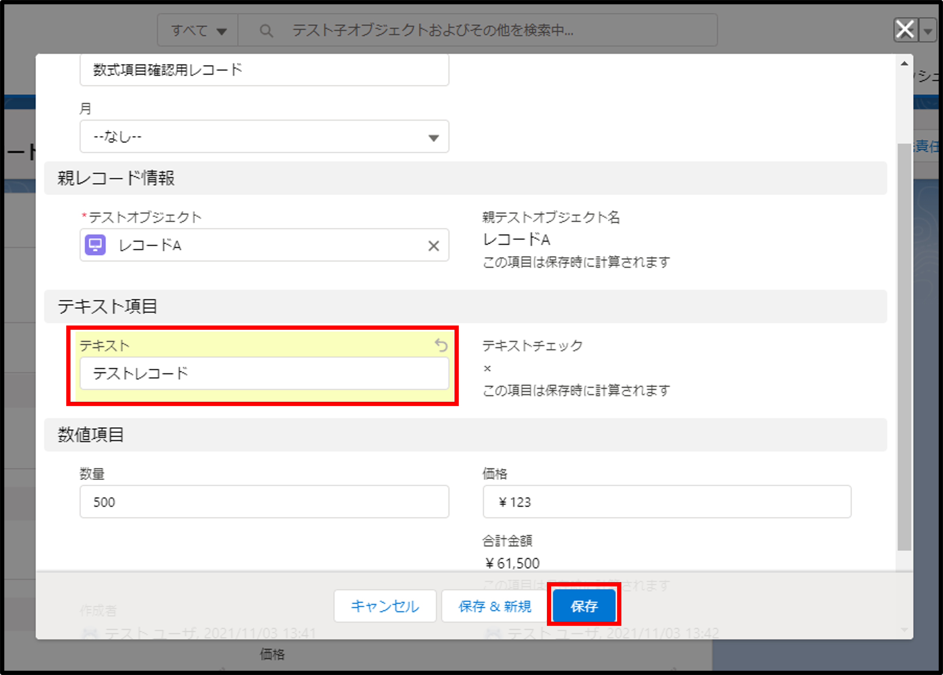 3. レコードが更新され、数式項目の値が想定通りの挙動をすることを確認